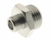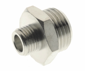 Hex Nipple Reducer Adapter, M5 Parallel Metric Male Thread x 1/8" BSPP Male Thread, All Nickel Plated BrassSpecifications:
