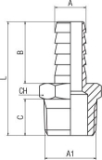 Hose Barb Adapter, External Hex Installation, 16mm Male Hose Barb x 3/8" BSPT Male Thread, All Nickel Plated BrassSpecifications: