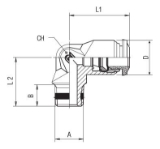 Fixed 90 Degree Elbow Push-Connect Fitting, 5mm Tube x M5x0.8 Parallel Metric Male Thread, Nickel Plated Brass w/Poly CollarSpecifications: