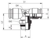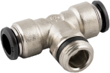 Swivel Branch Tee Push-Connect Fitting, 8mm (5/16") Tube x 1/8" Swift-Fit Male Universal Thread, Nickel Plated Brass w/Poly CollarSpecifications: