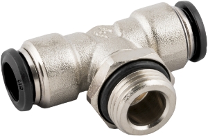 Swivel Branch Tee Push-Connect Fitting, 3mm Tube x M5x0.8 Parallel Metric Male Thread, Nickel Plated Brass w/Poly CollarSpecifications: