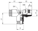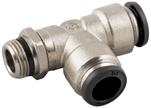 Swivel Run Tee Push-Connect Fitting, 4mm (5/32") Tube x 1/4" Swift-Fit Male Universal Thread, Nickel Plated Brass w/Poly CollarSpecifications: