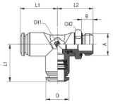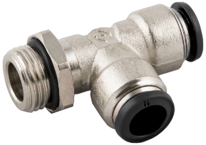 Swivel Run Tee Push-Connect Fitting, 4mm (5/32") Tube x M5x0.8 Parallel Metric Male Thread, Nickel Plated Brass w/Poly CollarSpecifications: