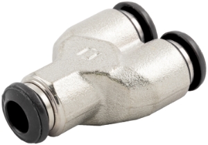 Union Y Push-Connect Fitting, 6mm Tube, Nickel Plated Brass w/Poly CollarSpecifications: