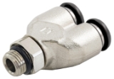 Swivel Y Push-Connect Fitting, 8mm (5/16") Tube x 1/8" BSPP Male Thread, Nickel Plated Brass w/Poly CollarSpecifications: