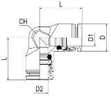 90 Degree Push-Connect Union Elbow Fitting, 12mm Tube x 10mm Tube, Glass Filled NylonSpecifications: