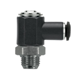 Right Angle Flow Control, Needle Valve, Screwdriver Adjust, 6mm Tube x 1/8" PTF Male Thread, Nickel Plated Brass Stem, Glass Filled Nylon BodySpecifications:
