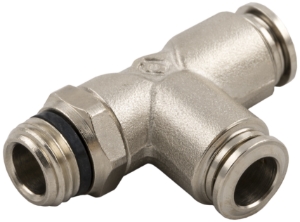 Swivel Run Tee Push-Connect Fitting, 8mm (5/16") Tube x 3/8" Swift-Fit Male Universal Thread, All Nickel Plated BrassSpecifications: