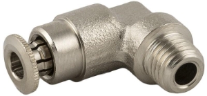 Fixed 90 Degree Elbow Push-Connect Grease Fitting, 6mm Tube x 1/4 Male NPTF, All Nickel Plated BrassSpecifications: