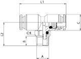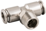 Swivel Branch Tee Push-Connect Fitting, 12mm Tube x 3/8" BSPT Male Thread, 316L Stainless Steel, NSF Certified, Food SafeSpecifications:
