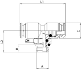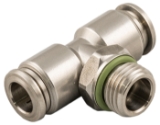 Swivel Branch Tee Push-Connect Fitting, 10mm Tube x 1/2" BSPP Male Thread, 316L Stainless Steel, NSF Certified, Food SafeSpecifications: