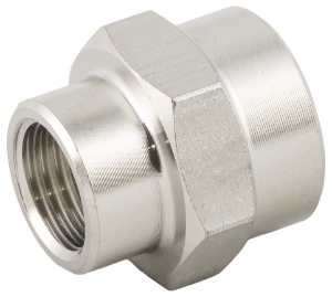 Female x Female Reducer Coupler, 1/4" BSPP Female Thread x 3/8" BSPP Female Thread, 316L Stainless Steel, NSF Certified, Food SafeSpecifications: