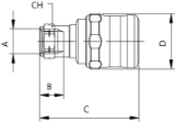 Safety Coupler, 1/4" Industrial Plug x 1/2" Female NPTF Thread, Nickel Plated Brass Body, Plastic SleeveSpecifications: