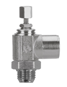 Right Angle Flow Control, Needle Valve, Knob Adjust, 1/8" Female NPTF x 1/8" PTF Male Thread, All Nickel Plated BrassSpecifications: