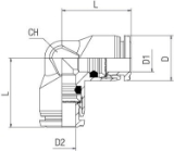90 Degree Push-Connect Union Elbow Fitting, 5/16" (8mm) Tube x 1/4" Tube, Glass Filled NylonSpecifications: