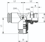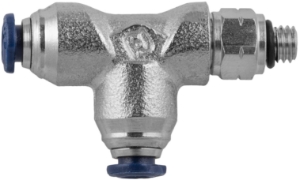 Swivel Run Tee Push-Connect Fitting, 1/8" Tube x 10-32 UNF Male Thread, Nickel Plated Brass w/Poly CollarSpecifications: