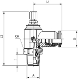 Right Angle Flow Control, Meter Out, Knob Adjust, 1/8" Tube x 1/8" PTF Male Thread, Nickel Plated Brass, Poly CollarSpecifications: