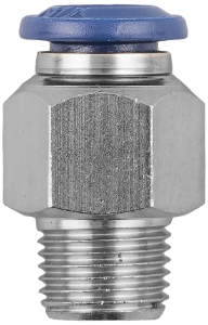 Straight Male Push-Connect Fitting, 5/32" (4mm) Tube x 1/4" PTF Male Thread, Nickel Plated Brass w/Poly Collar, Internal and External Hex InstallationSpecifications: