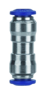 Straight Push-Connect Union Fitting, 1/8" Tube, Nickel Plated Brass w/Poly CollarSpecifications: