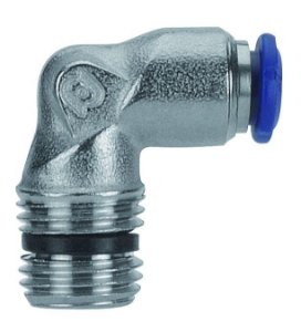 Fixed 90 Degree Elbow Push-Connect Fitting, 1/4" Tube x 1/8" NPTF Male Thread (No Sealant Required), Nickel Plated Brass w/Poly CollarSpecifications: