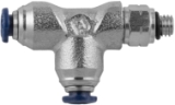 Swivel Run Tee Push-Connect Fitting, 1/4" Tube x 10-32 UNF Male Thread, Nickel Plated Brass w/Poly CollarSpecifications: