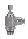 Right Angle Flow Control, Meter In, Knob Adjust, 1/8" Tube x 1/8" Swift-Fit Universal Male Thread, All Nickel Plated BrassSpecifications:
