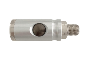 Push-Button Safety Coupler, 1/4" Industrial Plug x 1/2" Male NPTF, All Nickel Plated BrassSpecifications: