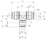 Infinity Outlet Reducing Tee Connector, 32mm Tube x 20mm Outlet Tube, All Nickel Plated BrassSpecifications: