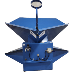 The GT-1000 Tilter is designed to increase Gaylord, tote or drum unloading efficiency, allowing for easy and complete material clean-out. Each unit comes standard with 4-bolt main pivot bearings for smooth rotation, a Firestone airbag, Parker pneumatics, box retainer and wand holder. The controls allow for both manual and automatic tilting to ensure the smooth and continuous flow of material to the vacuum wand with little or no assistance from the operator. The GT-1000 initiates lift at 1,000 lbs. with an air pressure of 80 psi. However, the initial tilt weight can be adjusted to a lower value by decreasing the air pressure via the built-in adjustable regulator. The GT-1000 is well-suited for handling free-flowing and semi-free-flowing materials, accommodating for a variety of downstream processing requirements. All tilters offer ground entry loading for fast, easy loading by pallet jacks and forklifts. Powder coated for durability in Pioneer blue.Features: